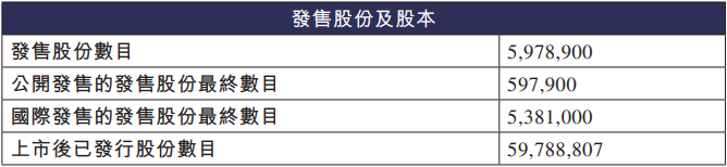 最终发售价及配发结果公告显示,挚达科技全球发售项下的发售股份数量为5,978,900股H股,香港发售股份数目为597,900股H股,国际发售股份数量为5,381,000股H股。